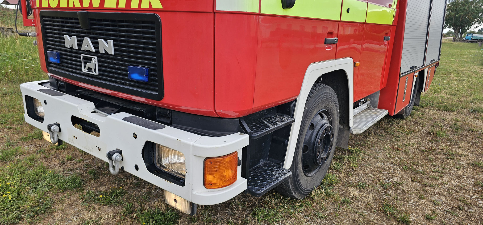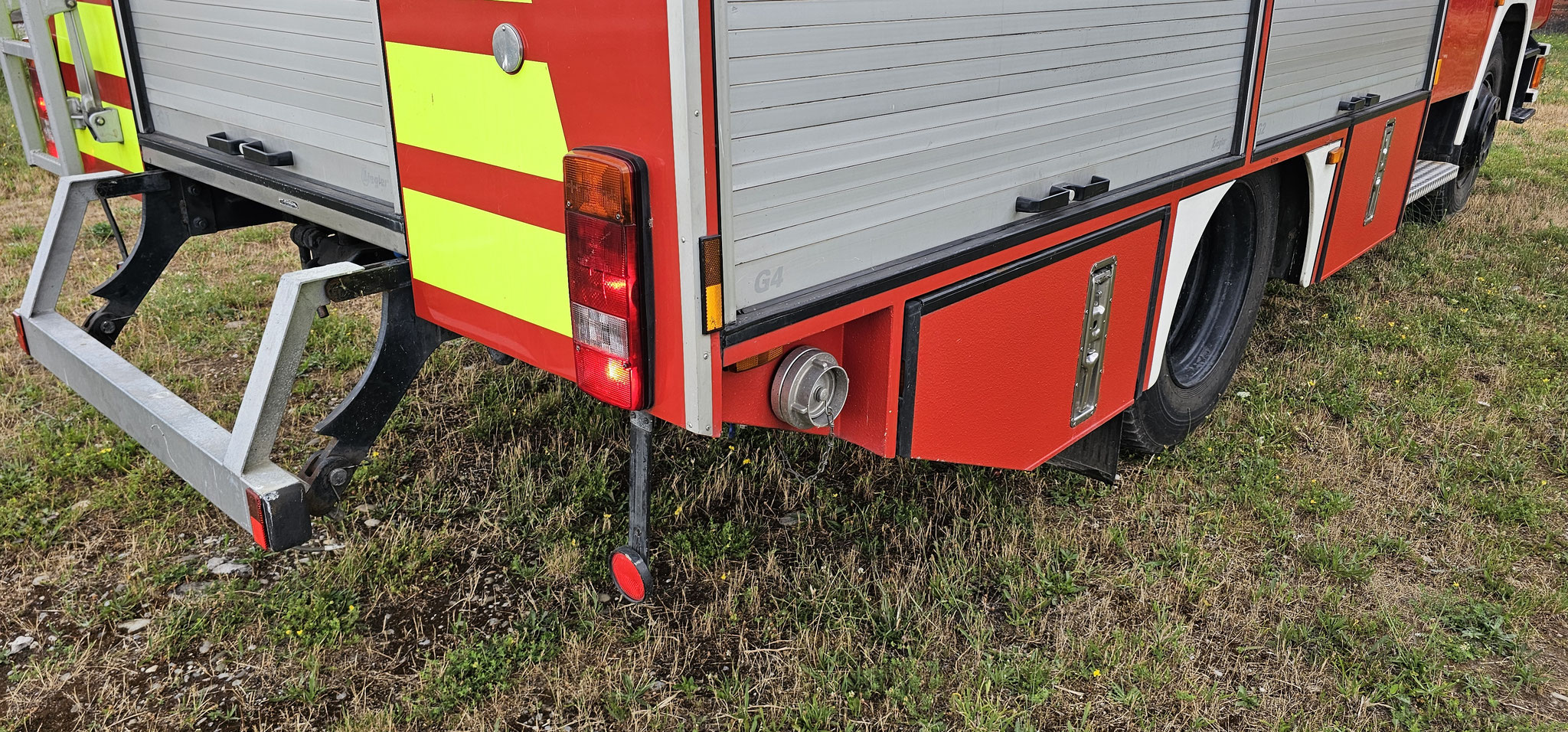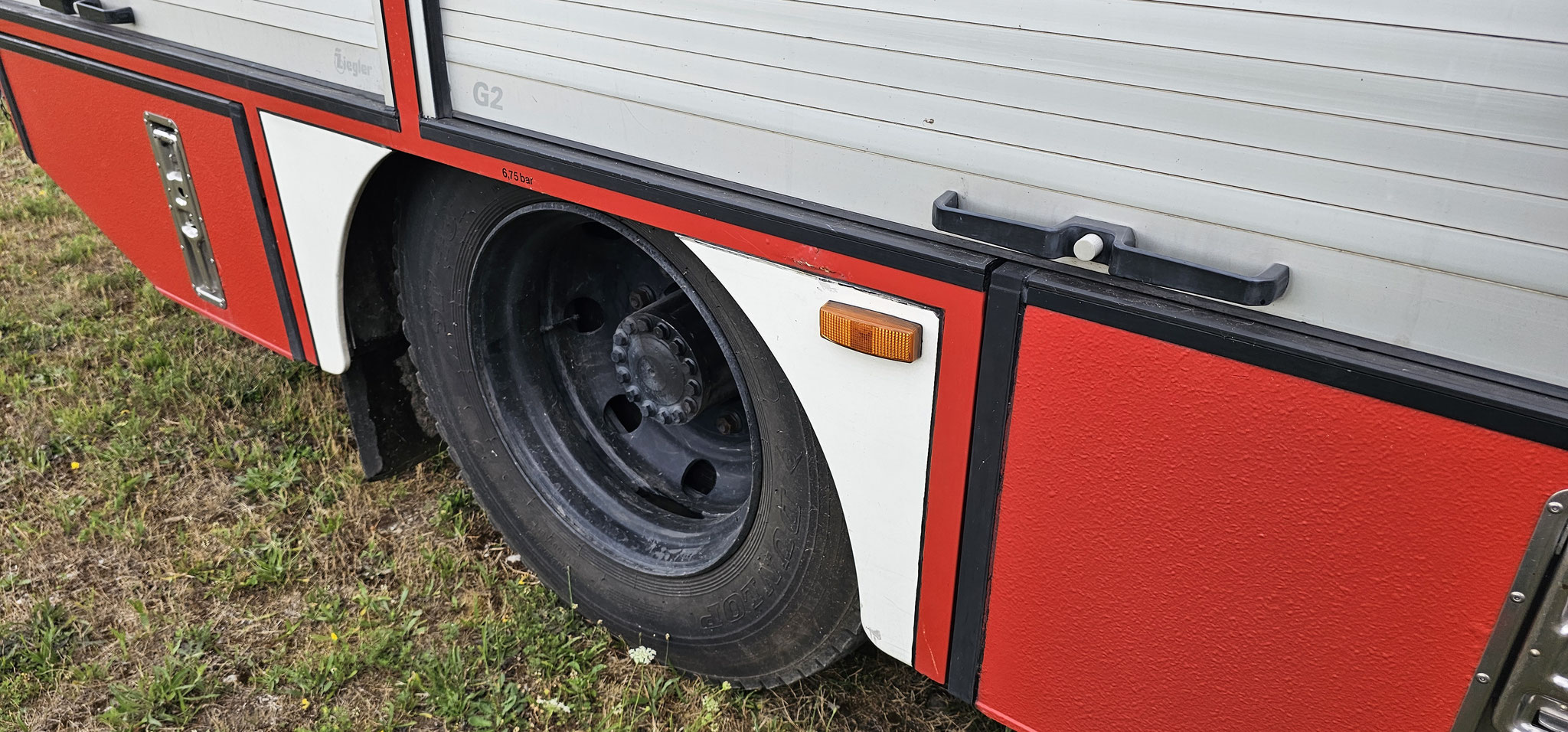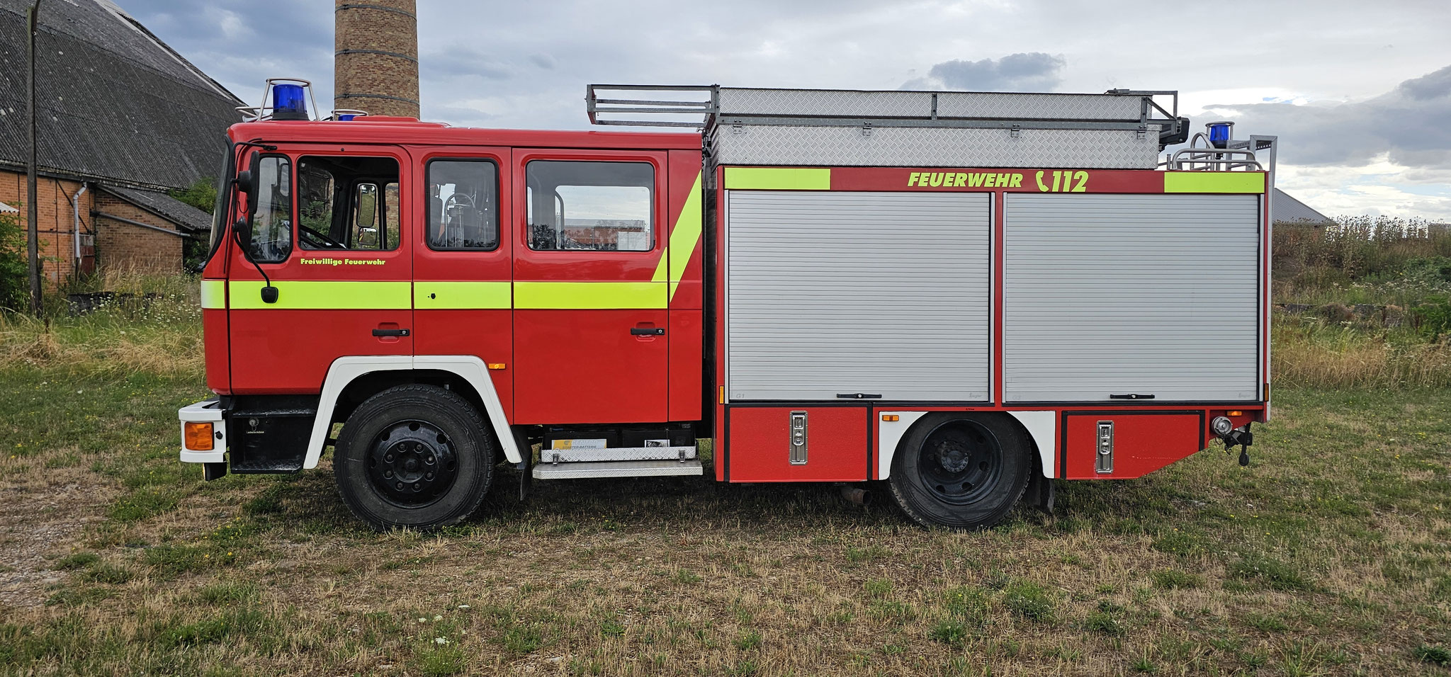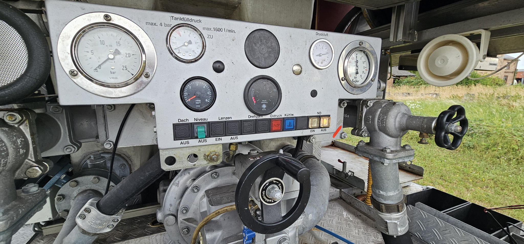 Sondersignal, Funk vorbereitet, Wassertank 1640 Liter, Heckpumpe Ziegler 16/8, formstabiler Schnellangrffschlauch, Teleskoplichtmast zwischen Fahrerhaus und Kofferaufbau,