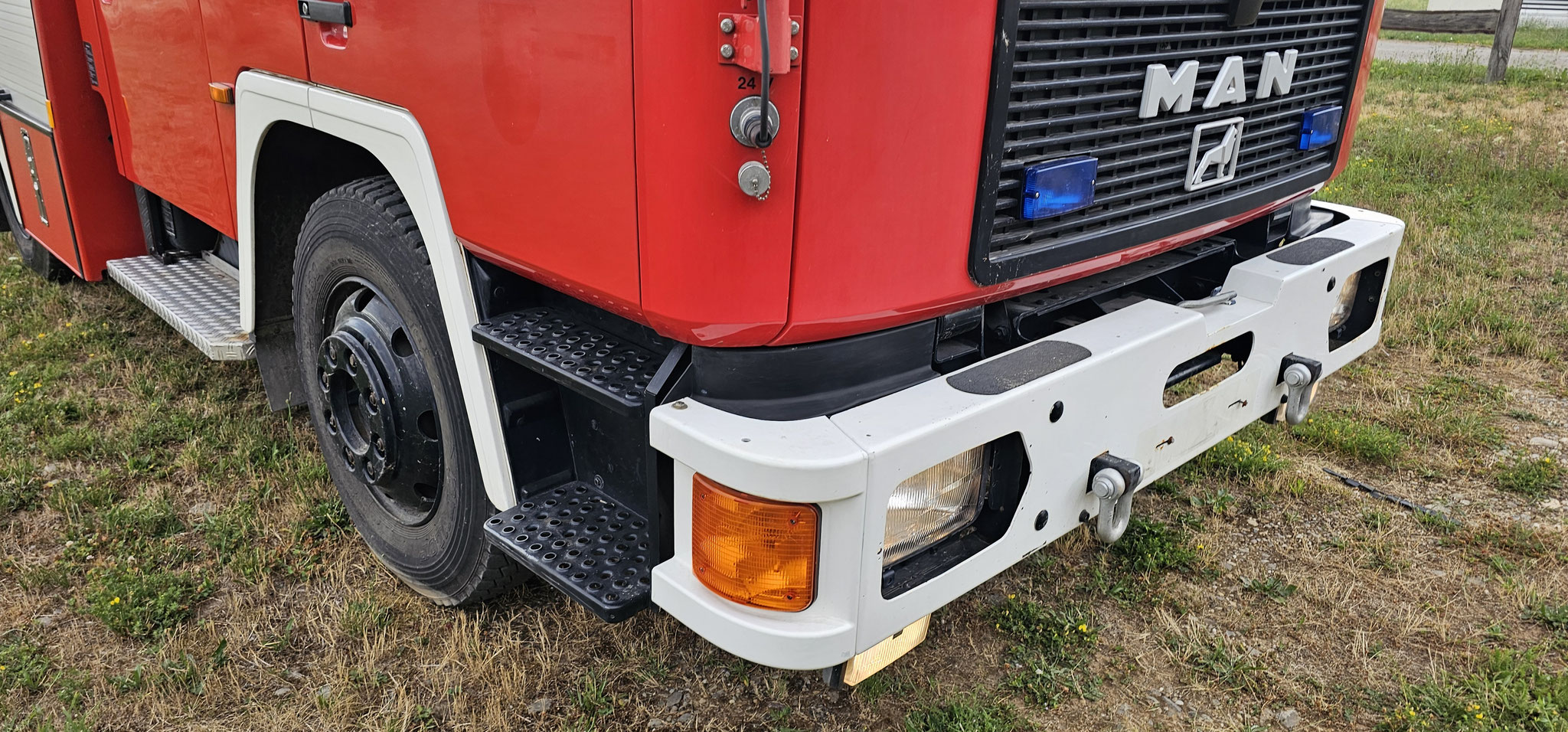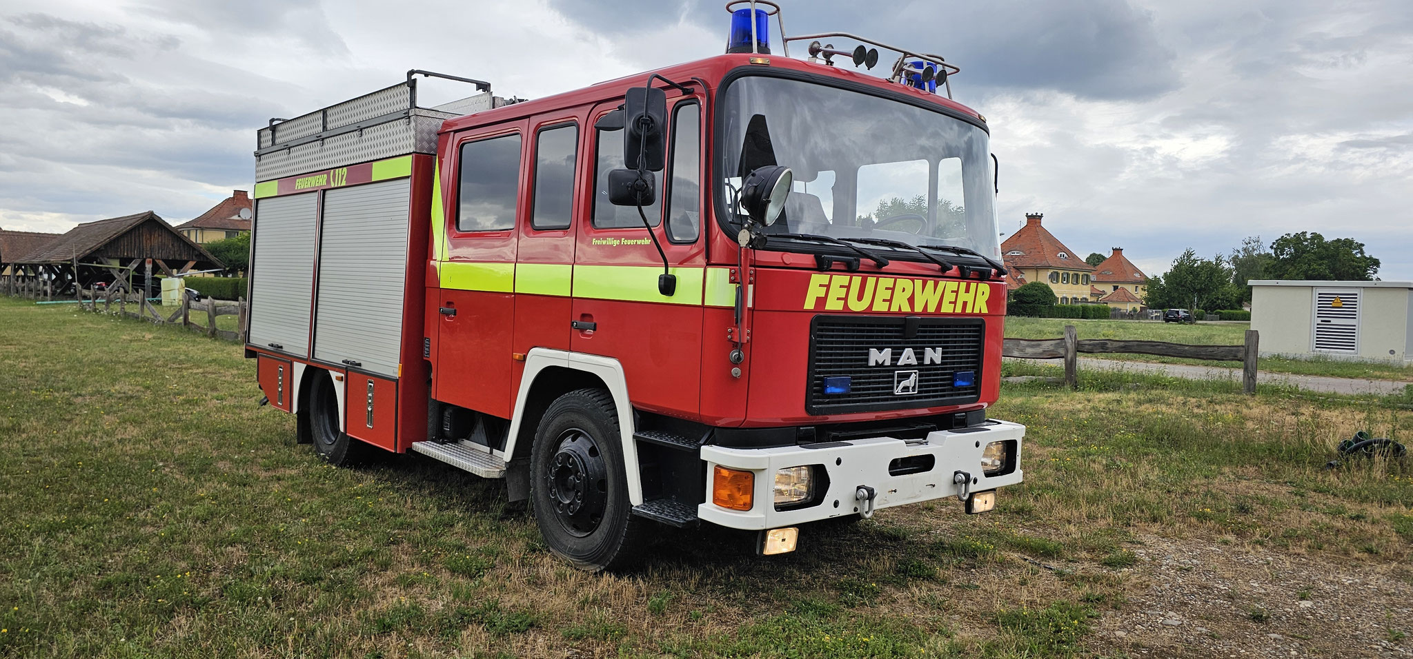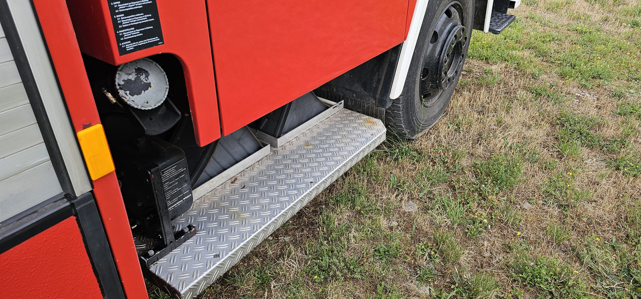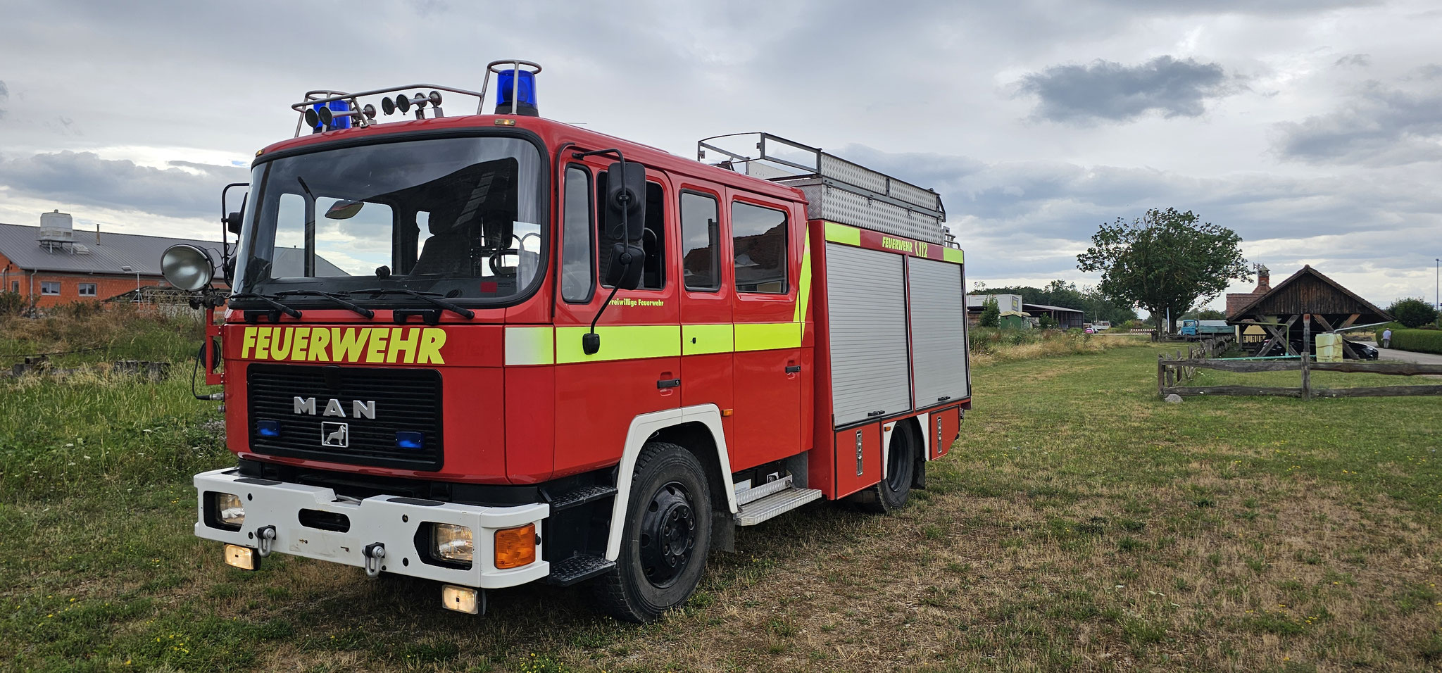 Sondersignal, Funk vorbereitet, Wassertank 1640 Liter, Heckpumpe Ziegler 16/8, formstabiler Schnellangrffschlauch, Teleskoplichtmast zwischen Fahrerhaus und Kofferaufbau,