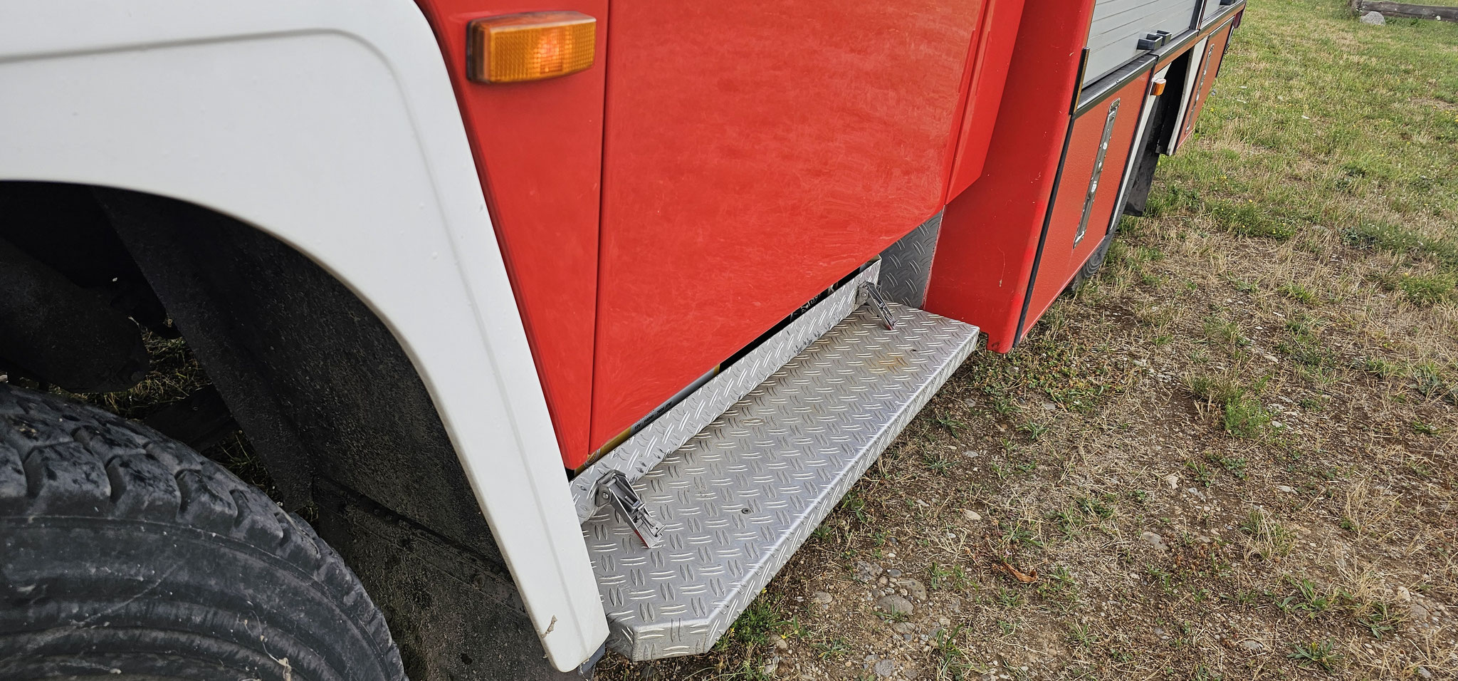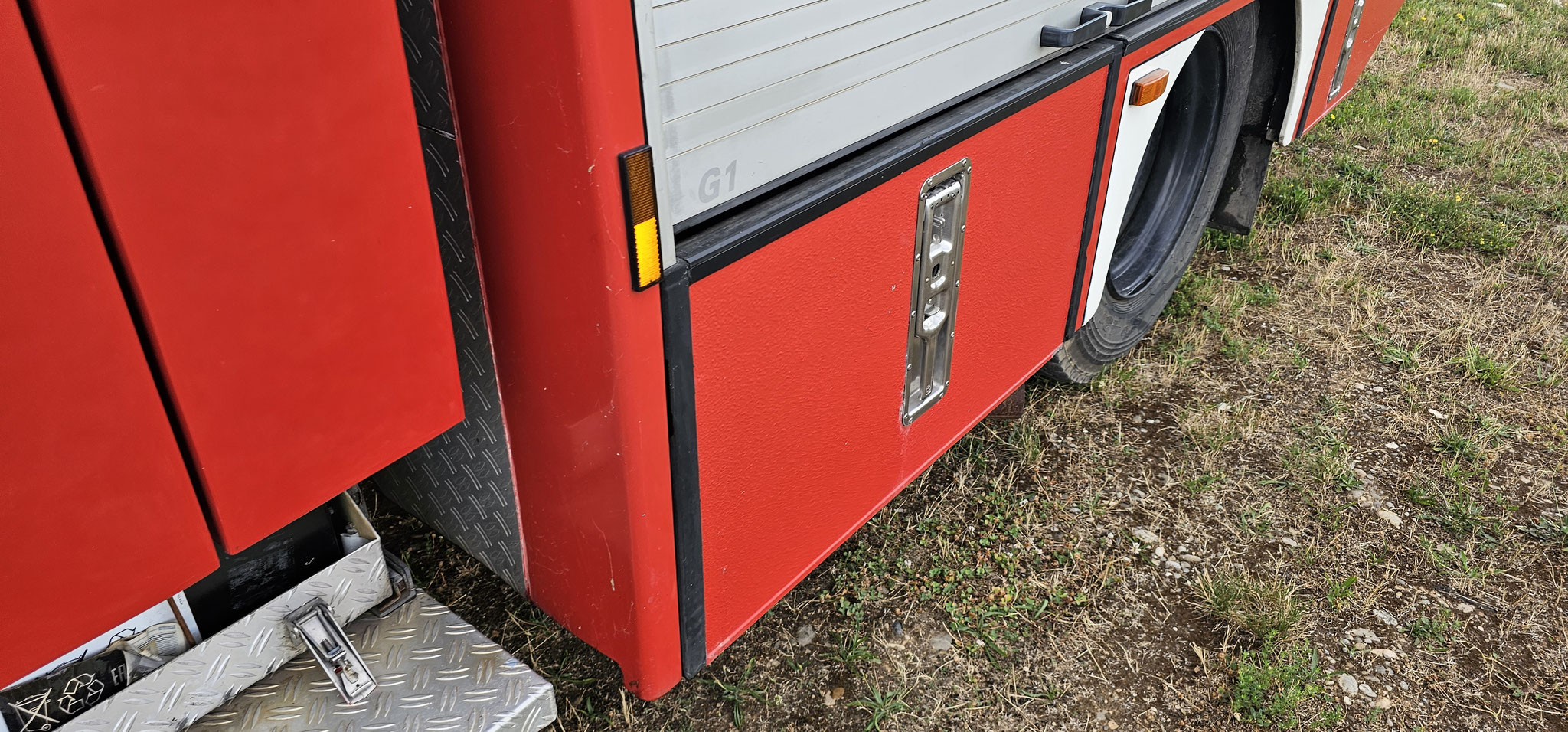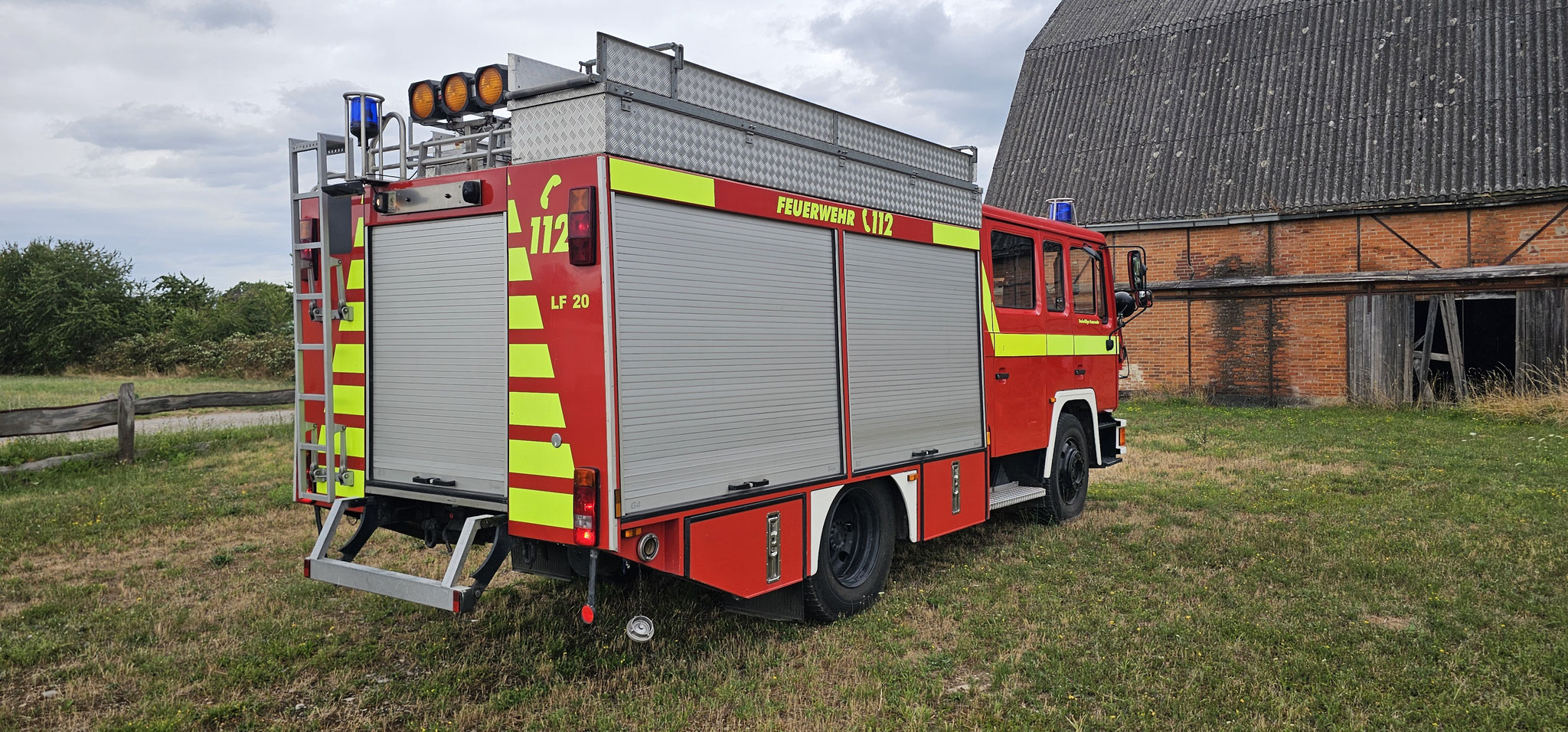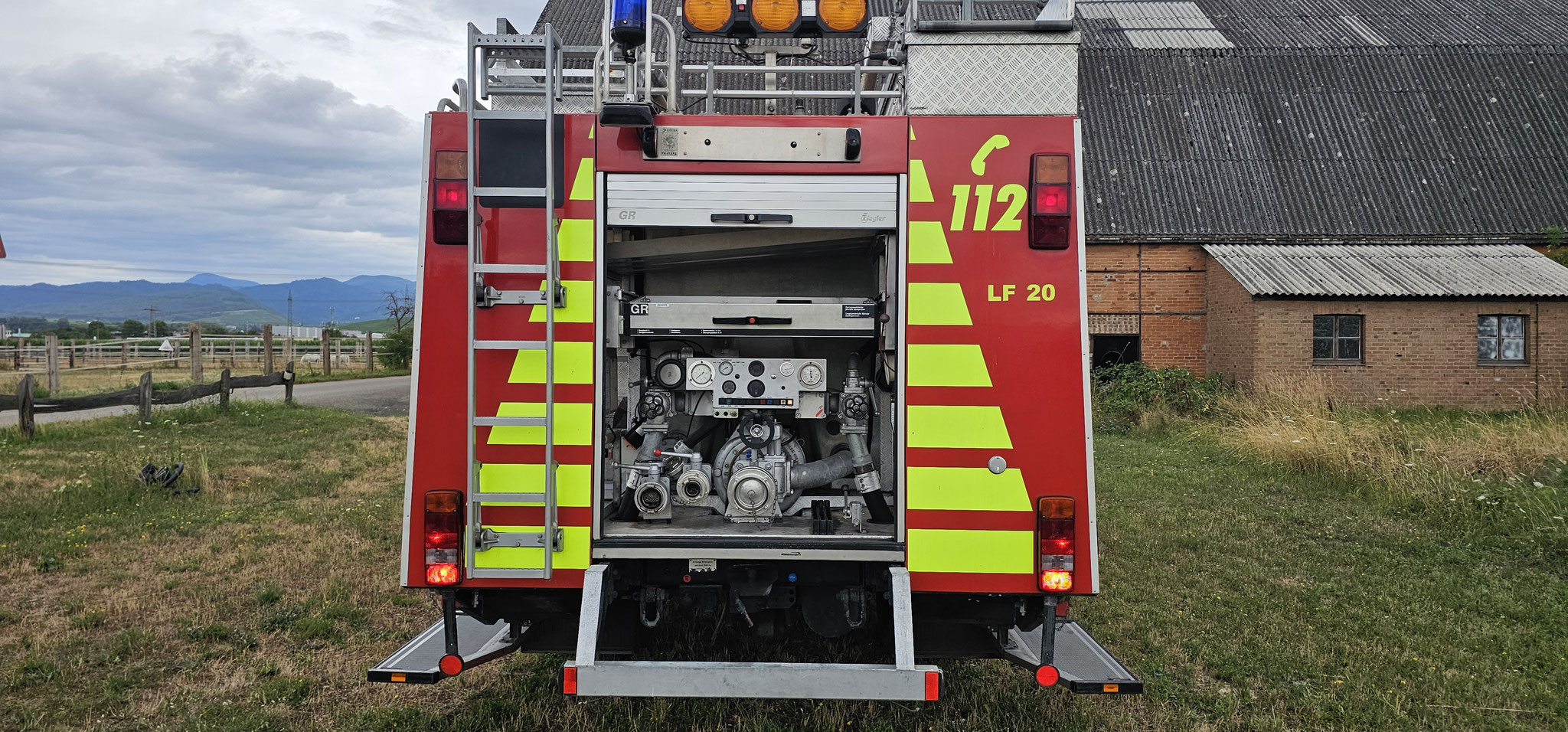 Sondersignal, Funk vorbereitet, Wassertank 1640 Liter, Heckpumpe Ziegler 16/8, formstabiler Schnellangrffschlauch, Teleskoplichtmast zwischen Fahrerhaus und Kofferaufbau,
